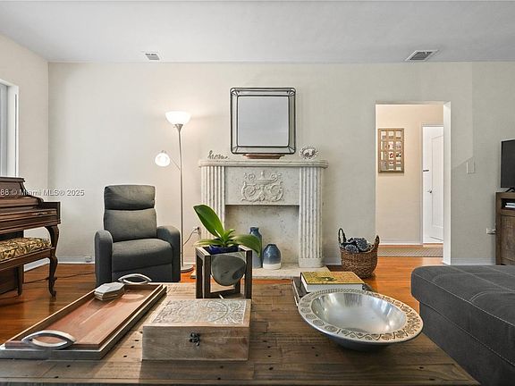 Nestled on one of North Gables’ quietest streets, this classic 2-bedroom, 1-bath home captures timeless Coral Gables charm. Overlooking Lisbon Park, it sits on a 6,773 sq. ft. lot surrounded by mature trees and natural light, offering rare privacy in this coveted area. A fully paved driveway enhances its curb appeal, while the bright sunroom opens to a warm living space with original pine floors and a cozy fireplace. The backyard offers room to expand, add a pool, or design your ideal outdoor retreat. Additional features include a 1-car garage and a prime location close to everything Coral Gables has to offer.