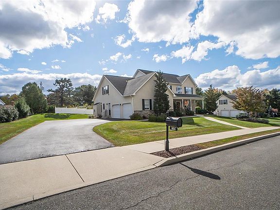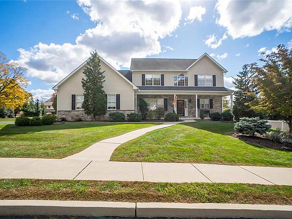 Welcome to 924 Evergreen Place in North Bethlehem’s Estates at Forest Hills. The current owner custom-designed and built this unique two-story colonial to fit her young family at the time. It has a spacious first-floor master suite, four bedrooms, and two full baths on the second floor. All the bedrooms have an abundance of closet space, with multiple walk-in closets. The foyer has gleaming hardwood floors that extend to the dining room on the left and straight through to the living room (currently used as her music room). The foyer and living room have 18’ ceilings with expansive windows providing lots of natural light. The first-floor master suite is on the west side of the house, separated from the main living areas. It offers a large bedroom with bay windows overlooking the backyard, a large walk-in closet, a double-door closet, a spacious bath with double vanities, a deep jetted tub, and a stall shower. The open-concept kitchen, breakfast area, and family room are on the east side of the main level. The family room has a cathedral ceiling, gas fireplace, ceiling fan, lots of windows, and access to the rear patio. The four bedrooms on the second level share two full baths. Two bedrooms share a “Jack and Jill” bathroom, and the other two share the main hall bath. The main hallway on the second level overlooks the foyer and living room. The unfinished basement has a 10’ ceiling, making it perfect for your custom-designed family room, in-home gym, just storage