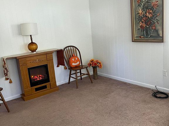 Darling, ready to move in, two bedroom, one bath home. Clean and neat! One level living with appliances, furniture, outdoor grill and furniture convey! Don't miss this amazing opportunity. New metal siding and a one year old metal roof, and garage. An electric fireplace completes the ambiance of this charmer.