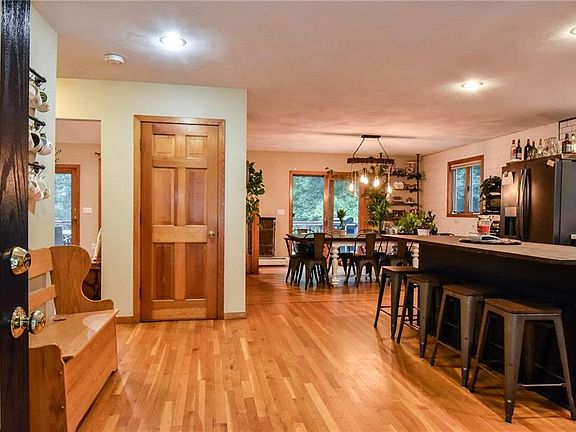 This house is truly a slice of heaven! Sitting on just over 2 acres, this 3/4 bed has 2 Full baths, a half bath with a newly updated open floor plan. The open kitchen and dining area is an entertainer's dream! The spacious living room area has a newly installed pellet stove that keeps the entire house warm! There is also a "bonus" room that can be a playroom or an office. Upstairs you will find a large master suite, cathedral ceilings, a walk in closet and even a loft! The two other bedrooms have a Jack-n-Jill bathroom setup! Outside there is a large deck (36x12), a spacious three bay garage (24x36) with a full upper loft. And if that wasn't enough, there is an additional garage separate from the residence. Quiet, wooded surroundings to have your coffee and just marvel at the scenery! Come take a look, you won't believe your eyes!