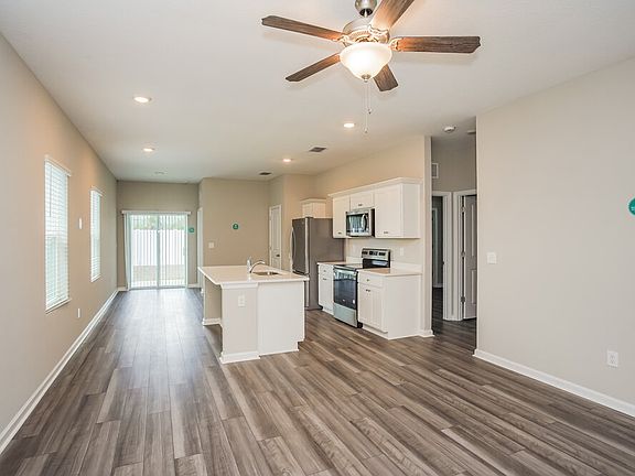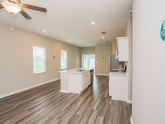With three bedrooms, two bathrooms, a covered back porch, and an attached garage, you'll feel right at home in this Ruskin, FL rental home. Located in the community of South Haven, this single-story property boasts a number of excellent amenities within its 1,412 square feet. The living room has stylish vinyl plank flooring and a lighted ceiling fan, and the open-plan layout flows directly into the kitchen. Home cooks will love preparing meals using stainless steel appliances, and the all-white cabinetry matches perfectly with the upscale quartz countertops. Head to the rear of the home to find the main bedroom suite. It has two rear-facing windows and its own ceiling fan. The en suite bathroom offers a roomy vanity. Come take a tour of this smart home today!