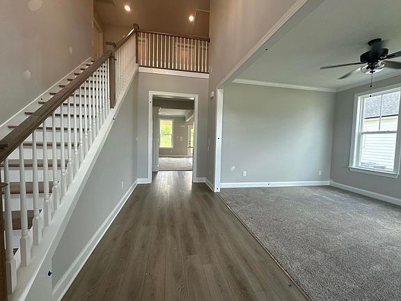 The Kingsland II Plan by Ivey Homes Builders features an open floorplan, with the kitchen/breakfast room opening directly into the family room, which works great for a play area, office, or guest bedroom Upstairs you'll find four spacious bedrooms including a primary bed / bath with dual vanities, separate toilet, and large walk in closet. Every home comes with screens on the windows and gutters are included! Better Built, Healthier Home. Crawford Creek is minutes from area schools and the Evans Town Center that offers parks, shopping, dining. The community offers walking trails, sidewalks, street lights, a resort-style community pool, lap pool, clubhouse, covered pavilion, and playground.