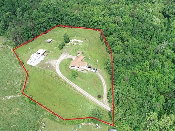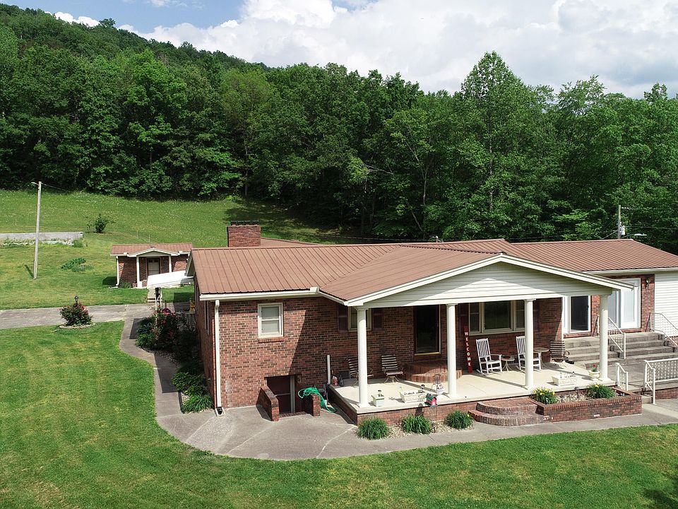 Very nice brick located on over 5 acres. This beautiful home offers 3 bedrooms, 3 full baths, open concept kitchen, living room with hardwood, den with fireplace, a large family room with patios and an office. The full finished walkout basement has a kitchenet, bathroom, and bedroom perfect for a in laws quarters. Outside behind the house is a matching building perfect for a she shed or man cave. Dual bay garage, a 40 x 58 metal utility building with electric, half bath & industrial sized bay doors. There is a separate septic system and concrete decking ready for a doublewide.