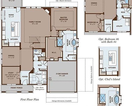 - Kitchen: Open to Family Room, Breakfast Area, Center Island, Granite/Marble Counters, See Agent, Walk-in Pantry