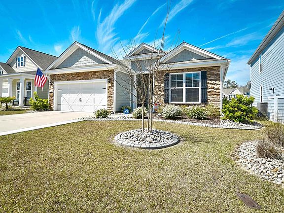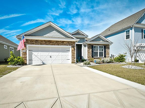 Welcome to your dream home in the sought-after community of Vann's Landing! Step into luxury living with the Eaton floor plan, boasting a seamless one-level layout that embodies modern elegance. Prepare to be wowed by the heart of the home - the kitchen. Adorned with stunning quartz countertops, an array of cabinets for all your storage needs, and a captivating glass tile backsplash, this kitchen is a culinary enthusiast's haven, equipped with top-of-the-line stainless steel appliances, including a gas range, cooking will become a delight and let's not forget the expansive walk-in pantry, ensuring you have ample space for all your kitchen essentials. As you explore further, you'll be greeted by tall ceilings and an abundance of windows, bathing the space in natural light and creating an inviting atmosphere. The master suite is a sanctuary of relaxation, featuring a tray ceiling and a luxurious en suite bath complete with a spacious double vanity, tile shower, and two linen closets for added convenience. Two secondary bedrooms and a full bathroom provide ample accommodation for guests or family members. Step outside through the sliding glass doors into your private oasis - a spacious enclosed back porch and patio area, perfect for entertaining or enjoying quiet moments in the serene surroundings. Outside, the meticulously landscaped yard adds to the curb appeal, while the fenced-in back yard offers security for your pets. Plus, a storage shed provides the ideal space for storing garden tools and extras, keeping your home organized and clutter-free. Experience the tranquility of Murrells Inlet living in this peaceful community, where every detail has been carefully crafted to offer you the ultimate in comfort and style. Close to all the area has to offer, the Marshwalk , dining, shopping, entertainment and more! Don't miss your chance to make this exquisite home yours.