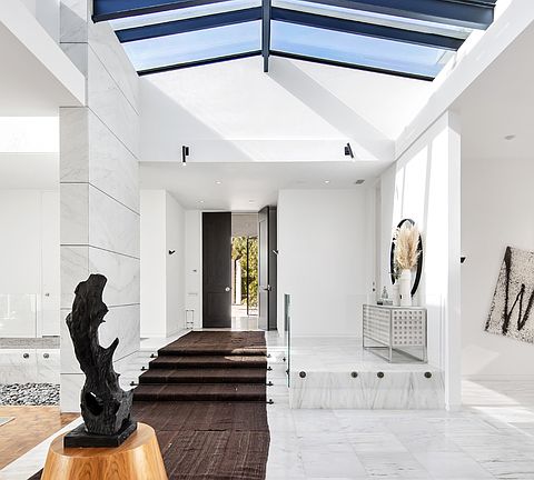 Short Term Rental Inquiries Only. "The Skouras Residence". Behind gates with expansive motor court and beautiful views. Classic 1956 Harold Levitt. Timeless and in impeccable condition. The antithesis of the proliferation of modern boxes currently flooding Trousdale. On a large 39+k lot. Entry is flooded with light from the high ceilings and opens to the living room, bar, lanai and game room plus a large dining room opening to a special outdoor dining area. Music room leads into the book-shelved library. Magnificent kitchen and butler's pantry are stainless steel and generous from cooking to storage. Kitchen opens to a family room with large screen TV. Left of the entry are three bedrooms with baths. To the right is the sumptuous master bedroom, with separate his/hers baths, looking out to a fountain and the view beyond. A sunny pool, lounge area, and bar and BBQ offer complete privacy. Off the living room is a wonderful sitting area with an outdoor fireplace.