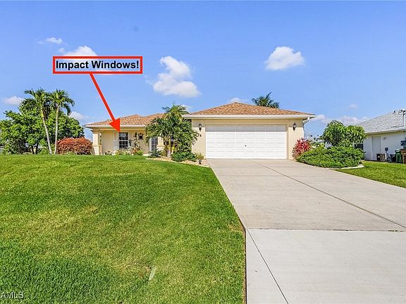 All Assessments Shall Be Paid At Closing! Welcome to your dream home in Northeast Cape Coral! This immaculate residence boasts 3 bedrooms, 2 bathrooms, and a 2-car garage, nestled on a picturesque fresh water canal with coveted western exposure and sunset views. Enjoy year-round relaxation in the solar-heated pool, complete with a covered lanai ideal for lounging or dining al fresco. Upgrades abound with impact windows, a new roof, new air conditioner, new stainless steel kitchen appliances, a deep water well, and city water / sewer. Experience the allure of lush landscaping, featuring palm trees and tropical plants, enhancing the tranquil ambiance of this 2006-built haven. Vaulted ceilings, a great room layout, and split bedrooms offer both spaciousness and privacy. The kitchen delights with an island and pantry, while the laundry room provides ample storage. Retreat to the master suite boasting a generous walk-in closet and a well-appointed master bath. Conveniently located near premier shopping and dining destinations, this meticulously maintained home offers the ultimate Florida lifestyle. Don't miss the chance to make it yours—schedule your showing today!