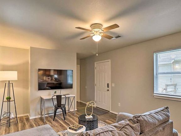 1 Mi to Main Street | Updated Interior | 0.6 to MSU West Plains Bedroom 1: Queen Bed | Bedroom 2: Twin/Full Bunk Bed w/ Twin Trundle, Futon MAIN FEATURES: Smart TVs w/ cable, modern interior design KITCHEN: Cooking basics, dishwasher, Keurig coffee maker, blender, microwave, ice maker, refrigerator, spices, toaster oven, water filter, stove/oven, dishware & flatware, breakfast bar w/ seating GENERAL: Free WiFi, keyless entry, complimentary toiletries, linens & towels, in-unit washer & dryer, central air conditioning, hair dryer, iron/board, laundry detergent, trash bags & paper towels FAQ: Pet fee (paid pre-trip), 4 steps required for entry, single-story home PARKING: Driveway (2 vehicles), street parking ADDT'L ACCOMMODATIONS: There are 5 additional properties available on the same street, each with separate nightly rates. If you would like to reserve multiple rentals, please inquire for more information prior to booking