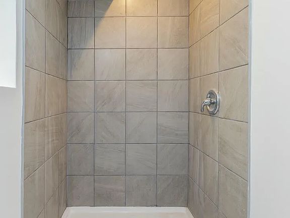 Beautifully updated bathroom with designer tile, modern fixtures, and a clean, contemporary feel.