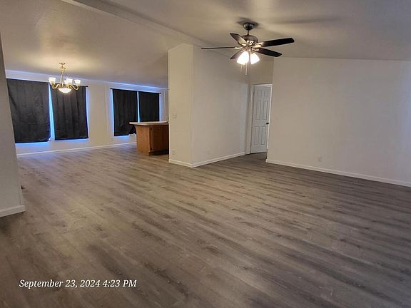 Looking for a larger home? This one has 4 bedrooms and 2 bathrooms. Vaulted ceilings. Open kitchen. Great eating area. Nice sized living room. Fresh paint and new flooring. All on 1 acre of partially fenced land. Pets on approval. Additional fees will apply.