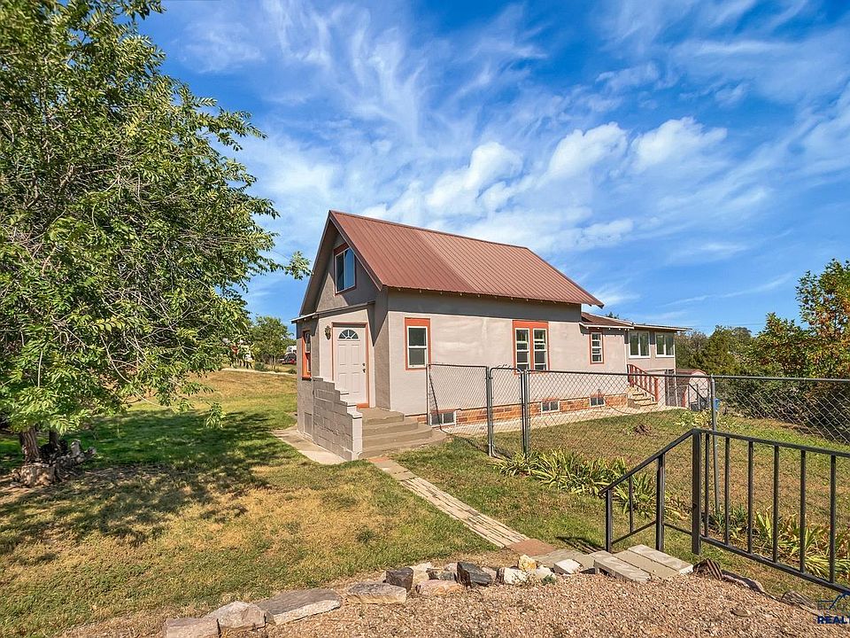 Home sits on a large corner lot. Enjoy your morning coffee in the enclosed sunroom. Main floor laundry room. Main floor room could be used as the master bedroom with large connecting bath or dining room. Upstairs rooms would make an ideal studio, large bedroom suite or play area. Basement room could be an additional bedroom with a second bath and walkout entrance. Upgraded windows, metal roof, central air and furnace. Storage Shed. Move-in ready!
