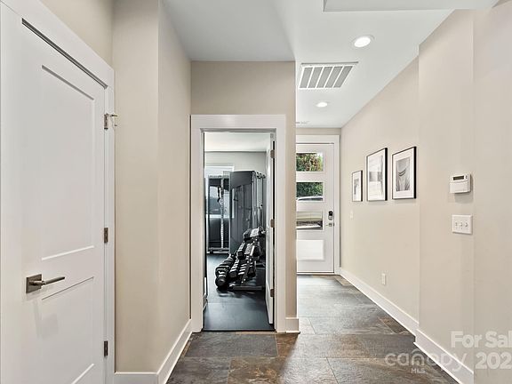 The first-floor bedroom has been converted into a fully equipped home gym, ideal for wellness or work-from-home use. The open-concept main level features high ceilings, abundant natural light, and a cozy gas fireplace. In the kitchen, a waterfall countertop, high-end cabinetry, and a premium built in sound system make cooking and entertaining effortless. Upstairs, the primary suite offers a second fireplace, a soaking tub, and a calm, spa-like atmosphere.