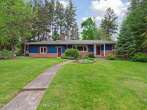 Nestled in the desirable Pinecrest neighborhood on close to a half-acre, this homey ranch with classic details is a nature-lover's oasis. Majestic pines, incomparable views and the unusually large lot size make this a unique find this close to MSU. Extra large driveway and parking pad ensure there is plenty of space for family and visiting guests. Everyone wants to be in the remodeled kitchen which is the heart of the home. Complete with breakfast bar, stainless appliances and gas range, the kitchen looks out over the massive, woodsy back yard. It opens on one side to a large dining room and on the other you'll find a 3-seasons porch for indoor/outdoor entertaining. Two bedrooms and full bath round out the first floor.Venture downstairs and you'll find two spacious and comfortable rec room areas (one with a lovely wood-burning fireplace) along with another large bedroom. The quality of the basement finishes is higher than average, you'll see that no expense was spared with recessed lighting, nice carpeting and larger than standard basement windows. You can't beat the neighborhood, walkable to Green Elementary, the north tier trail and downtown East Lansing.