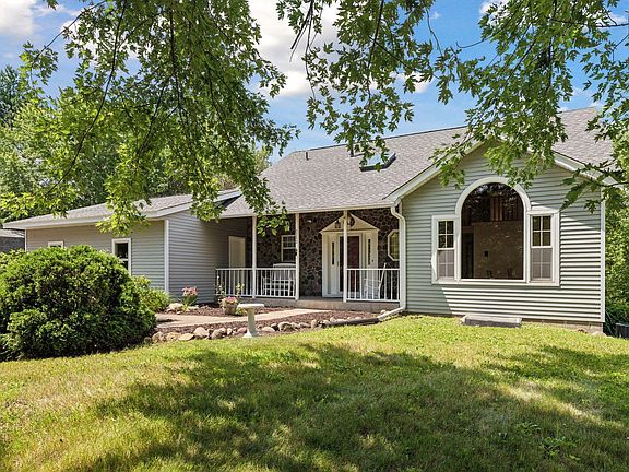 Welcome home to 5 serene acres at the end of a quiet, winding street. This well built home offers a fantastic floor plan with endless opportunities to make it your own. The main floor features a primary bedroom, a spacious kitchen with stainless steel appliances, sun bathed dining room, and an open living area with a cozy fireplace. Enjoy the tranquility of the private, wooded backdrop and the convenience of nearby amenities. Newer roof and siding, as well as a storage shed. Don’t miss this great opportunity!