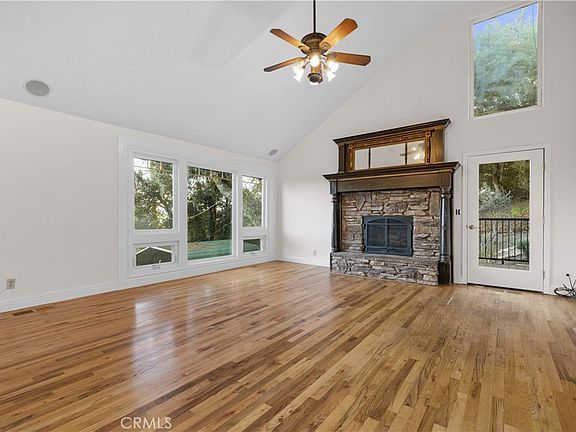 Spectacular location near the Atascadero Lake Park with privacy and views! Enjoy the peaceful setting of this 3 bedroom and 2 bathroom home with an open floor plan that offers abundant natural light with multiple patio doors that access the outdoor decks and patios. Your entry is greeted with hard wood flooring that flows into the living room. The high ceiling is balanced with an attractive wood burning fireplace and view windows. The kitchen has been updated and offers an eating bar, dining area, and opens to a large outdoor patio for enjoying the fantastic views while entertaining or relaxing. The primary bedroom has an on-suite bathroom and a private deck to the great outdoors. The third bedroom has a loft in addition to outdoor access to a separate entry.