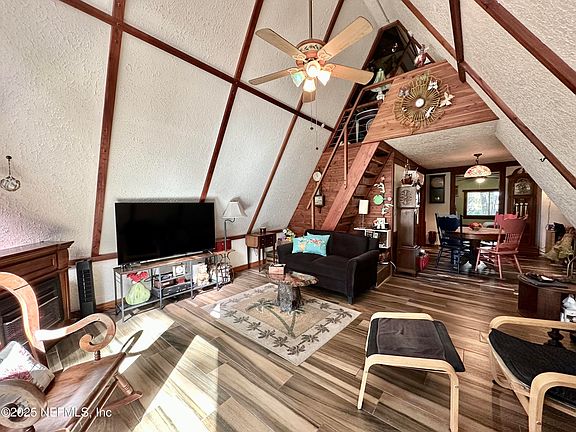 Welcome to Bell Spring, the neighborhood built around its own natural spring — where tranquility, privacy, and Florida beauty meet! This storybook 1.05-acre Fanning Springs home offers a park-like setting with mature trees, gardens, and a teardrop-shaped driveway. Enjoy a new deck, entry steps, rear patio, and fenced yard with fruit-bearing citrus trees. The home features vaulted ceilings, a custom loft with balcony, and a bright kitchen with stainless-steel appliances, pull-out cabinetry, and newer windows. A massive RV carport with 40-amp EV charger, workshop, water softener, and filtration system add practicality to this peaceful retreat. Optional $35/year Suwannee River Springs Association membership includes private river access, boat launch, and park areas. Located just 8 miles north of Chiefland, this Bell Spring gem combines country living and modern comfort — a must-see Fanning Springs property for sale!