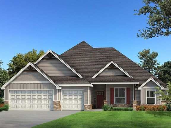 This Cornerstone floor plan includes 2,495 Sqft of total living space, which features 2,200 Sqft of indoor living and 295 Sqft of outdoor living space. Home offers 3 bedrooms, 2 full baths, 2 covered patios, a formal dining room, an informal dining area, a study, a utility room, and a 3-car garage with a storm shelter installed. The kitchen features 3 CM countertops, stainless steel appliances, stunning pendant lighting, custom-built cabinets to the ceiling, a center island featuring a trash can pullout, and a large walk-in pantry. The great room offers a stacked stone surround center gas fireplace, large windows, wood-look tile, a ceiling fan, rocker switches throughout, and Cat6 wiring. The primary suite holds a sloped ceiling detail, windows, a ceiling fan, and our cozy carpet finish. The primary bath features a free-standing tub, separate vanities, a walk-in shower, and a huge walk-in closet. Outdoor living comes with a wood-burning fireplace, a TV hookup, and a gas line for your grill. Home also has Healthy Home Technology, a tankless water heater, a whole home air purification system, R-44 insulation, & so much more!