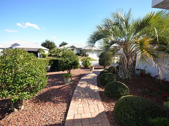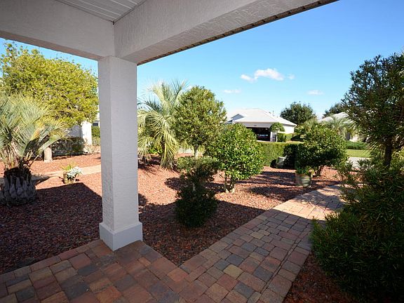 Distance from back neighbors and located on a no-through street! Relax and enjoy retirement living in this Wakefield model home located in the much sought after gated 55+ golf Community of On Top of the World. Home features neutral colors throughout, inside laundry with washer & dryer, professional landscaping with low-maintenance water saving yard, double pane windows with tinted UV film, paver driveway, front walk and front porch, and more. Enter the foyer and view the spacious Living Room with triple slider that leads to a screened Lanai under roof. To the left of the foyer is the Den, and guest hall which leads to the Laundry Room, Guest Bedroom and Guest Bath. To the right of the foyer is the kitchen with breakfast nook, pantry, and eat-at counter. The Dining Room
