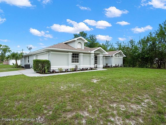 Welcome to this stunning 3-bedroom, 2-bathroom POOL HOME ideally situated on a corner lot, with a side entry garage, and conveniently located near the center of town. As you step through the double doors, you'll be greeted by the elegance of the formal living and dining areas, complete with NEW LUXURY VYNIL PLANK FLOOORING. The heart of the home lies towards the back, where the kitchen and family rooms seamlessly flow together, creating an inviting open floor plan. Prepare to be wowed by the COMPLETELY REMODELED KITCHEN, boasting new GRANITE countertops, upgraded 42'' kitchen cabinets, and modern stainless steel appliances. The kitchen offers both bar seating and a dinette space with a bay window overlooking the pool area. Retreat to the spacious primary bedroom suite, boasting a slider that opens onto the lanai and a large walk-in closet providing ample storage space. Indulge in a spa-like experience in the primary bathroom, complete with double sinks, QUARTZ COUNTER TOPS, a garden SOAKING TUB, and a glass-enclosed walk-in shower. Both guest bedrooms are generously sized and share a renovated bathroom that conveniently doubles as a pool bath through a door leading to the lanai. The inside laundry room features newer washer and dryer, along with a utility sink, ensuring functionality and convenience. Step outside and discover your own private oasis. The LARGE COVERED LANAI leads to a magnificent screen-enclosed pool and deck space, providing plenty of room for entertaining or enjoying family gatherings. The partially FENCED YARD adds an extra touch of privacy. The garage is in pristine condition and features a newly epoxy coated floor. No popcorn ceilings, fresh interior and exterior paint, and brand NEW CUSTOM BLINDS throughout add to the overall appeal of this home.