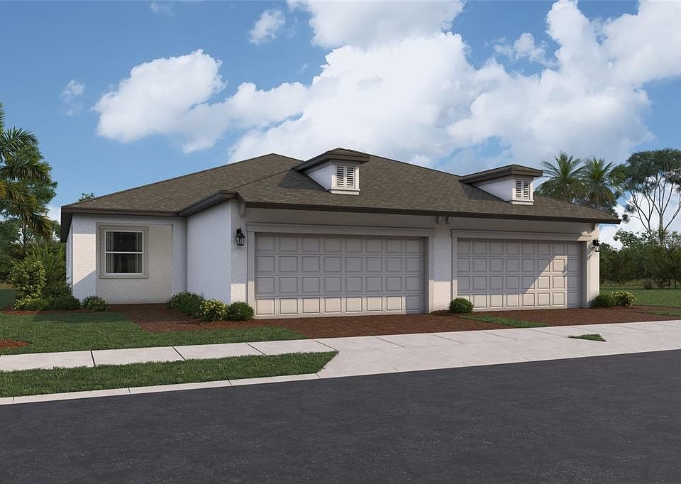 Under Construction. ****SPECIAL FINANCING AVAILABLE FOR A LIMITED TIME ONLY FROM PREFERRED LENDER. RESTRICTIONS APPLY, FOR QUALIFIED BUYERS, SUBJECT TO APPLICABLE TERMS AND CONDITIONS. SUBJECT TO CHANGE WITHOUT NOTICE**** Welcome to The Pearl at Southpointe This beautifully designed attached villa offers 1,680 square feet of comfortable living space, featuring two bedrooms, two bathrooms, a versatile flex room, and a two-car garage. Step through the entryway into a welcoming foyer, with the flex room conveniently located to the side—perfect for a home office or reading nook. Continue into the heart of the home, where the modern kitchen awaits, positioned across from the hallway leading to the guest suite and laundry room for added convenience. The open-concept design flows seamlessly into the dining area and great room, creating an ideal space for entertaining. Large sliding glass doors open to a private lanai, perfect for enjoying the outdoors. At the rear of the villa, the Owner’s Suite offers a peaceful retreat with a walk-in closet, double-sink vanity, and a separate water closet for privacy.