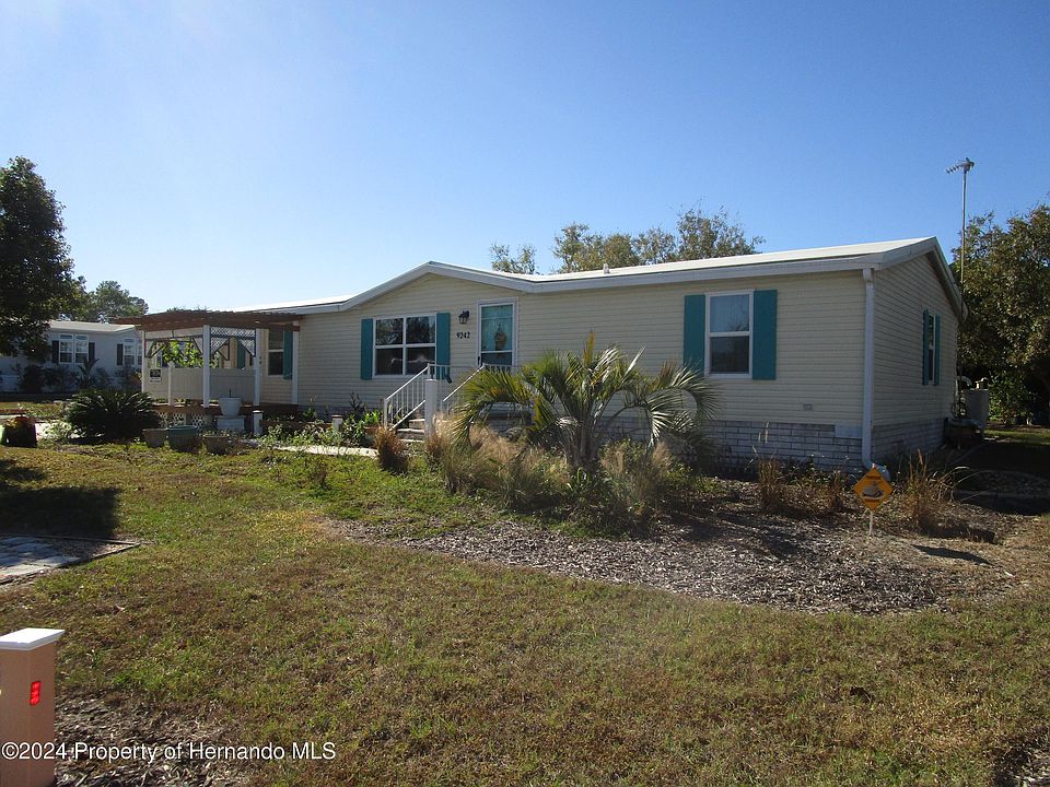 2002 4 bedroom split plan with lots of room. 2019 Membrane roof 2015 air conditioner, inside laundry. Great master bedroom with jacuzzi tub, stall shower and double sinks, and a porch. Nice Kitchen with lots of cabinets and a island. Double driveway with a one car garage and a work bench. Nice large screened in porch in the back of the house that over looks a nice back yard with lots of flowers. this a great corner lot with lots of room. Come enjoy your retirement in Brookridge a great community.