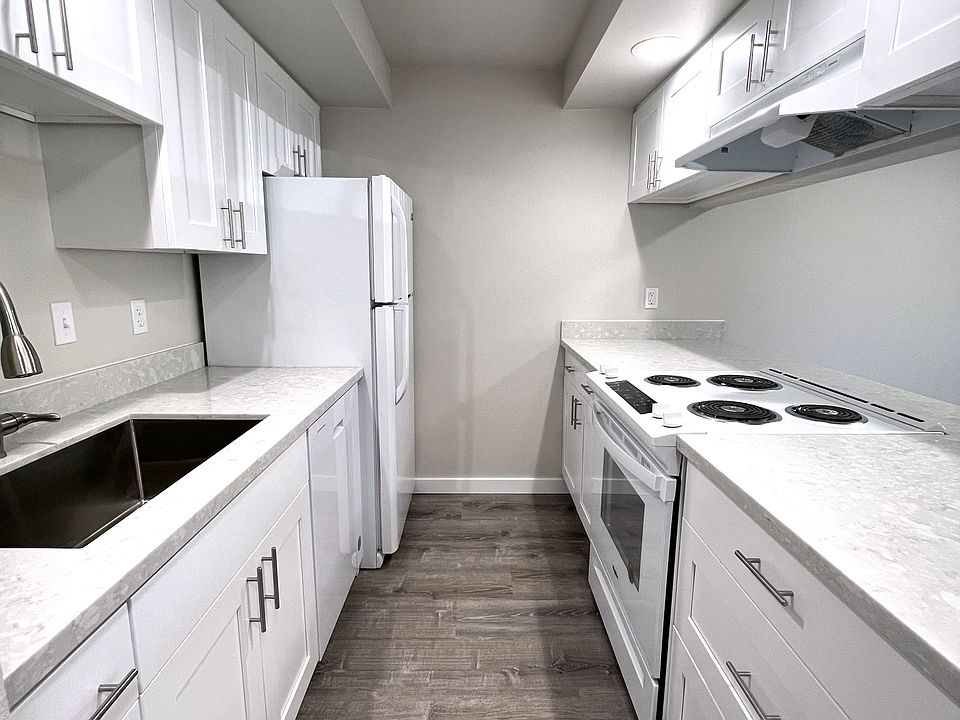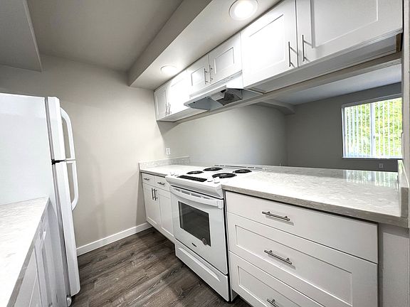 This apartment home boasts an open floor plan overlooking mature landscaping with large West facing windows for ample light. Contemporary stylish finishes including quartz countertops, designer paint, brushed nickel accessories, new luxury vinyl plank flooring, bathroom vanity and light fixtures throughout! Plenty of storage. And we welcome cats!
