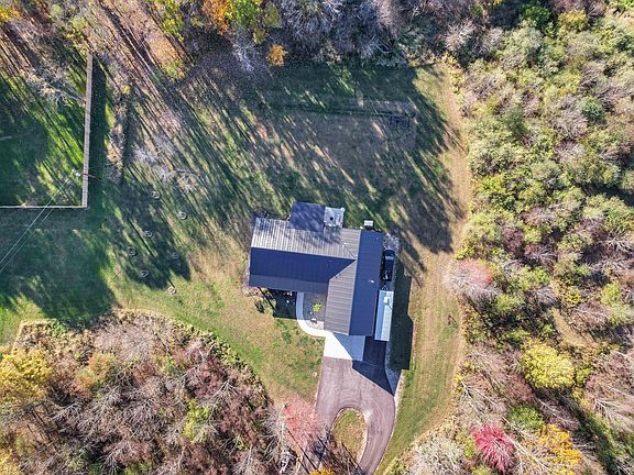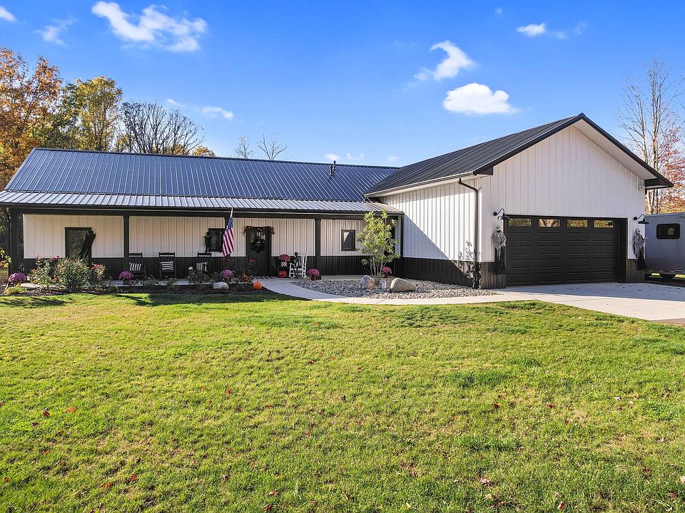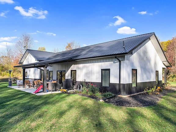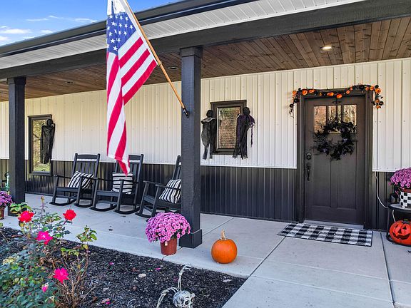 Stunning 3-bedroom, 2.5-bath luxury barndominium on 5 beautifully wooded acres. This 1,950 sqft home features 10-foot ceilings throughout the open-concept living space with large picture windows overlooking manicured trails and lush wooded scenery. The chef's kitchen offers quartz countertops, stainless steel appliances, and opens to the dining room, ideal for gathering and entertaining. The large primary suite includes a luxurious ensuite bath dual vanity, glass walled custom tiled shower and large walk-in closet. The garage features 12-foot ceiling with heated, insulated floors, walls, ceilings, and garage doors, 220V outlet, and generator hookup. Outdoor living is exceptional with a 14x20 covered back patio and a 14x12 uncovered patio, groomed trails through the property, fire pit, and deer food plot with tree stands. A rare combination of modern luxury, functional amenities, and private country living makes this property a must-see. Book your private showing today!