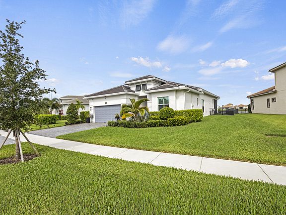 Step into this stunning 3 bedroom, 3 bath lakefront home with a versatile den in the gated Verano community, where every sunset paints the sky over your private patio. Inside, soaring ceilings and smooth-finish walls complement an open kitchen with granite eat-in countertop and stainless steel appliances. Relax in comfort knowing this home has been upgraded with hurricane-impact windows and doors. Lawn care, cable, and internet are included. Enjoy resort-style amenities: heated pools, spa, fitness center, 27 pickleball courts, tennis, bocce, basketball, and luxury dog parks. Socialize at Club Talavera with piano bar, craft rooms, banquet hall, lakeside fire pits, and concert lawn. Publix, restaurants, and Cleveland Clinic are just minutes away--experience the ultimate Florida lifestyle! Step into this stunning 3-bedroom, 3-bath lakefront home in the gated PGA Verano community, where every sunset paints the sky over your private west-facing patio. As you approach, an extended, commercially sealed driveway leads to a raised panel garage with double-hanging shelves and painted epoxy flooring, while a designer glass front door with sidelights and 7" commercial gutters welcomes you in. Inside, soaring 11' ceilings and Level 5 smooth-finish walls create an airy, sophisticated ambiance, complemented by porcelain wood-plank tile flooring throughout. The open, 6' extended kitchen features Custom Kitchen Craft cabinets with 5' uppers and crown molding, under-cabinet lighting, GE Monogram range with hood, GE Profile appliances, Level 4 quartz countertops, and a porcelain backsplash. The master suite offers a spa-like retreat with frameless shower enclosures and designer Level 4 finishes, while the additional bedrooms and versatile den provide flexible spaces for family, guests, or a home office. Throughout the home, LED recessed lighting, designer hanging fixtures, coastal ceiling fans, plantation shutters, and 8' raised panel doors add elegance and style to every room. Step outside to your extended lanai and private patio, perfect for entertaining or watching the lakefront sunsets. The backyard includes a summer kitchen, fenced yard with privacy screening, coastal ceiling fans, and security motion lights. Relax knowing lawn care, cable, and high-speed internet are included.