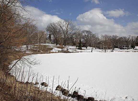 A serene area with 1.5 Acres fronting Round Pond. The home is original from 1961 and needs some updating. There is tons of room to build a very large home. Wooded and hilly, this lot is terrific and in the middle of West Bloomington.