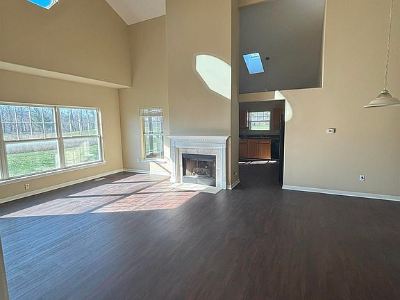 Serenity awaits you in this Deep River Pointe Ranch! This home features soaring cathedral ceilings and skylights to bring in plenty of natural light. The open great room overlooks the backyard, with views of the golf course and country club. The primary suite features a spacious walk in closet, double sinks in the bathroom, and tall ceilings. The additional 2 bedrooms are located off the entry foyer and share a full guest bath. The kitchen is equipped with sleek black appliances and a small space for dining. Enjoy the scenic views from the attached sunroom or entertain outside on the expanded patio. Additional photos to come, but don't miss your opportunity to tour today!