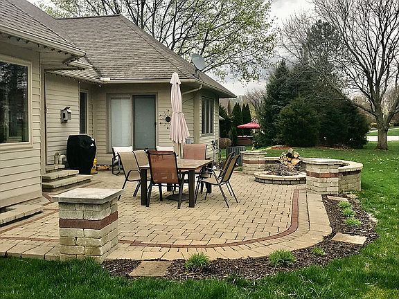 This is your chance to be a part of the nostalgia that surrounds the Warwick Hills subdivision! This contemporary ranch home is in walking distance to the golf course giving you easy access when the Ally Challenge comes to town. The brick and wood exterior is complemented by the beautiful landscaping. Inside you will be amazed at every turn in this 4300+ sq ft home w/ 4 bedrooms and 4 baths. The great room stands out when you walk in the front door. Just off of the foyer is the formal dining room on one side with a den behind French doors for privacy on the other side. The spacious eat-in kitchen w/ breakfast nook and bar boasts great views! Generous master bedroom suite with doorwall leading out to the deck, walk-in closet, and private bathroom. Incredible finished lower level with daylight windows has 1750 sq ft with a bar, game room, exercise room, bedroom and a full bath. You will love relaxing on the patio with a built-in firepit. Lawn sprinkler.