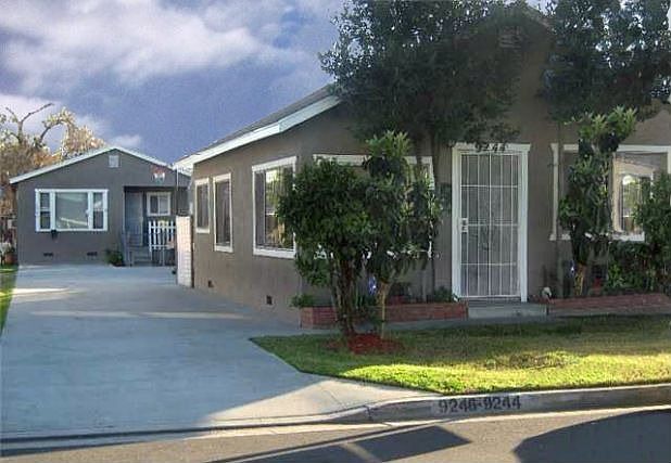 Two 2BR houses on a lot in Bellflower. Owner-occupy, try 11,375 down+ line in 1 for an est. 800/mo. after PITI. Investor, try 81, 250 down for an est. 950/mo cash flow after PITI. 5%APR