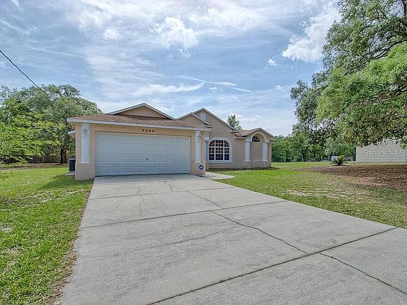 On almost two and a half acres in rural Hernando County sits a lovely concrete block home ready for your new life in the country. This one owner home has 3 bedrooms, 2 bathrooms, formal dining room, and separate family room with wood burning fireplace. The master suite has access to the back porch and master bath has nice tile work with dual sinks and walk in shower. Three tray ceilings throughout the tastefully designed home. The attached 2 car garage leads you to an indoor laundry room. The kitchen opens to the breakfast nook with view of the backyard. The grounds are ready for your imagination. Property is complete with large detached metal building that even has a loft. This will give you plenty of space to store your toys, lawn mower and all those seasonal decorations. Property is centrally located offering convenient access to I-75, Tampa, Orlando, Lakeland, and Brooksville.
