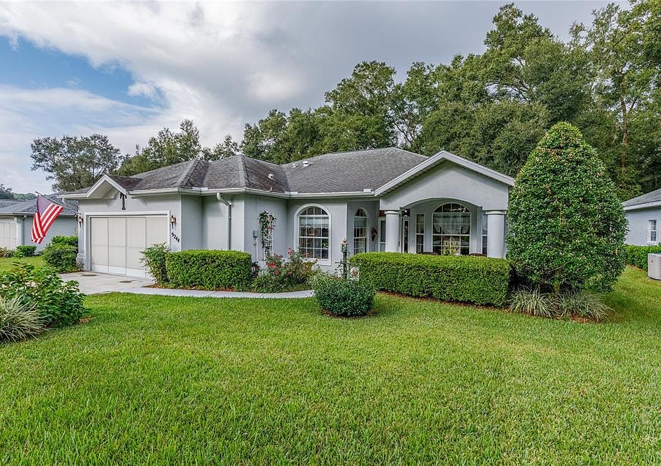 One of the larger Rainbow Springs Villas with maintenance free landscaping. This 1,558' Model had the Florida Room enclosed and is now 1,726' under air/heat. The sunny eat-in kitchen with updated granite counters, Island & Breakfast Bar w/stools. The Laundry room has a door to the 2 car garage which has a workspace to the side. A special feature is the enclosed Florida room off the living room with views of nature. The wooded backyard is part of the community green space offering privacy and serenity. The split bedroom plan offers privacy for owners & guests. The primary bedroom has a large walk-in closet and large bathroom with Skylight, walk-in shower, soaking tub and double vanities. You are only minutes away from the private resident's beach park on the Rainbow River with kayak launch, covered pavillions and swim area. Monthly Villa fee is $120 which includes lawn care... The Rainbow Springs HOA is $236. annually and includes the renovated clubhouse, pickleball and tennis, pool, billards, fitness center and Restaurant.