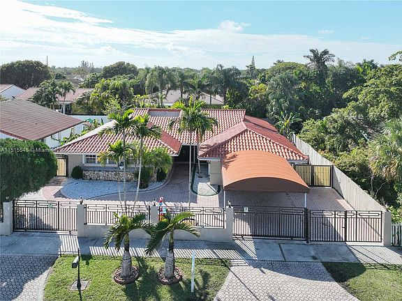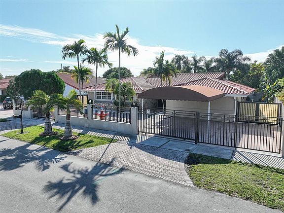 MOVE IN READY Front with Concrete and Ornamental Iron Fencing. Electric Gates on both sides of Circular Driveway with Awning Covered Parking. Home Features 4 bedrooms 3 baths with Den that could serve as 5th bedroom or office. Open Concept with Living and Dining Rooms. Kitchen with Breakfast Area overlooking pool and spa. BBQ area with Bar perfect for relaxation and entertaining. Indoor Atrium and Indoor Patio to display your plants. Conveniently located just minutes away from SR 836, Palmetto Expressway and Turnpike.