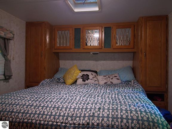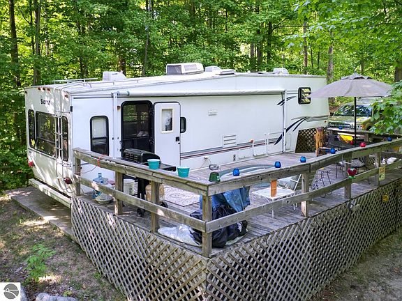 Tucked away in the countryside of Northern Bear Lake, this two-acre wooded parcel offers both seclusion and opportunity with its open-level camping "nook." A comfortable place to retreat. Ten minutes to Bear Lake or ten minutes to Beulah, enjoy local treasures such as nearby public lakes and rivers and Nature Preserve Trails. This property offers options for additional camping, entertaining, or storage space for boats used in trolling nearby freshwater lakes. A turnkey destination with many existing amenities; full service electric, 1999 Sierra travel trailer—located off a country road, surrounded by towering hardwoods, pines, and fruit trees. Southern sun exposure. Perfect building spot for a home with a walkout basement. The property includes a well-maintained 5th wheel trailer and a 12 x 32 partially shaded wooden deck. Ideal location to "get away from it all"!