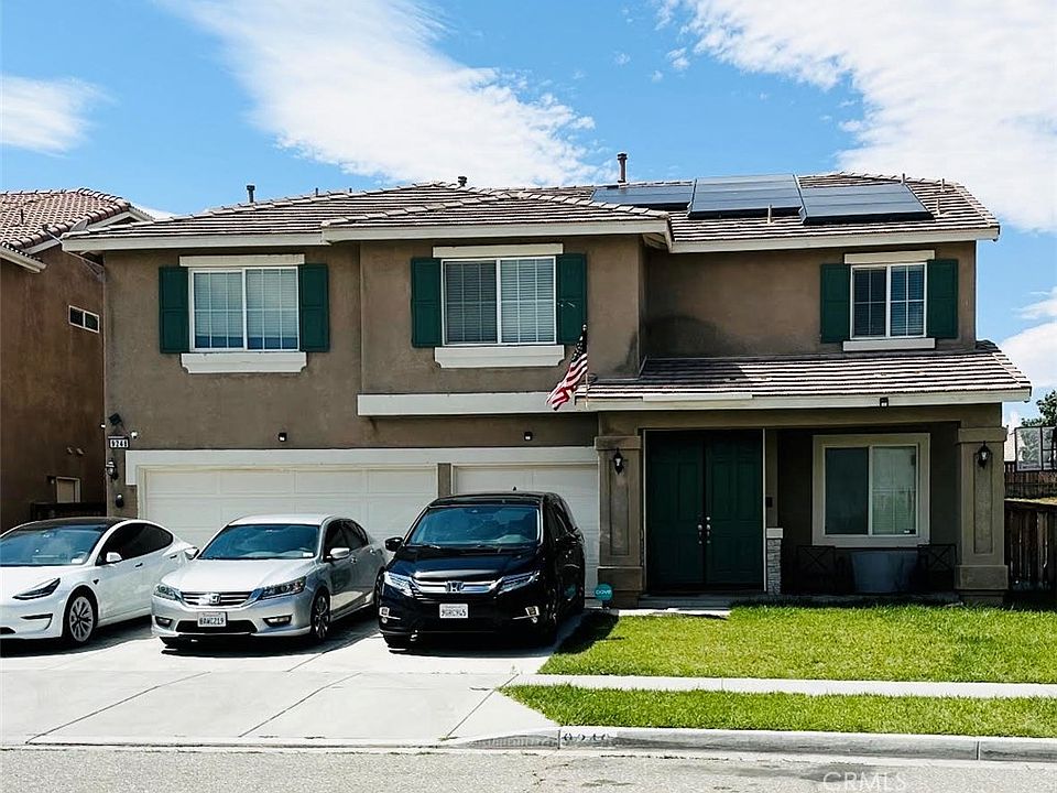 Tesla solar and power wall system included, system to be paid off by seller at close of escrow... Amazing 2,900 sq. ft. living area home, with a generous 7,200 lot. This home comes with many extras. All 5 bedrooms have a walk-in closet, One Bedroom down stairs, A large loft upstairs, formal Dining room area, 3-car garage, back yard 8x20 shed, Grass sodded back yard, over-sized patio cover built 2 years ago which includes ceiling fans, power outlets with 60amp breakers, so out door heaters can run off of avoiding tripping main breakers. This Gem of a home also has 24 Tesla solar panels and 1 Tesla Power wall, capable of producing electric energy for the home for up to 7 days if the city Grid goes out. It also generates power to the home during peak times so you don't need any from the energy company, avoiding having to get an electric bill. All of this is viewable from the Tesla App. This home is a must see to fully appreciate.