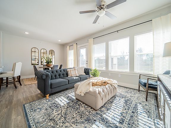 - Exterior features: * Available in select units, 24-hour wellness and fitness studio, 9' ceilings, Air-conditioned corridors, Balcony, Barbecue, Business Center, Community kitchen with coffee bar, Courtyard, Daily social events and activities, Detached garages and carports, Dual manicured courtyards, Dual vanities*, Garden, Granite countertops, Grey brown walnut shaker style cabinetry, Guest Room, Happy hours, Located within Highland Creek, Open concept floor plan design, Pet Park, Pickleball court, Private terrace/balcony, Stainless steel appliances, TV Lounge, Walk-in glass showers, Weekly fitness classes