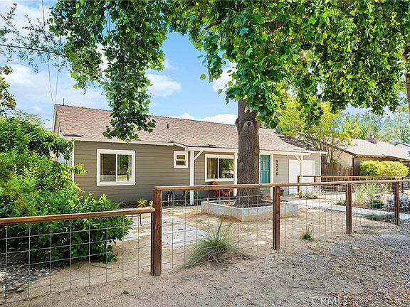 Tucked away off Durham Dayton Highway, just down the street from Gale Vineyards and Durham Community Park, this adorable home offers a perfect blend of charm, comfort, and country living. With no neighbors behind you—just serene almond orchards and gated access to Butte Creek—you’ll love the peaceful setting this property provides. The front of the home welcomes you with a beautifully landscaped, fully fenced yard, low-maintenance decomposed granite pathways, and a freshly painted exterior. The cozy front porch is the perfect spot to sip your morning coffee or unwind in the evening while enjoying the quiet surroundings. Inside, you'll find hardwood floors and wood-cased windows throughout, with stylish shiplap accent walls adding a warm, rustic touch. The spacious living room features a large picture window that fills the space with natural light. The kitchen offers a large pantry, beautifully painted cabinets and butcher block countertops. The primary bedroom includes an en-suite bathroom, and there are two guest bedrooms, a full guest bath, and a hidden office nook—perfect for remote work or extra storage. Step outside to your beautiful backyard, featuring a 50-foot back patio, large garden area, fruit trees, and an area for a cozy firepit for evening gatherings. There’s also a spacious shed/workshop for hobbies or extra storage. Updates made in 2020 include a new roof, windows, plumbing, and HVAC. Additional features include a whole house fan, owned water softening and reverse osmosis systems, and a one-car garage with attic access. If you’re looking for a peaceful and updated place to call home, this charming Durham property checks all the boxes.
