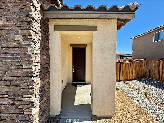 Single story home located in a cul-de-sac in Hesperia. Built in 2018, this residence offers 3 bedrooms and 2 bathrooms with approximately 1,835 square feet of living space. Features include vinyl wood flooring throughout the main areas, an open concept kitchen with generous counter space and cabinetry, and a private primary suite. The home also includes an attached 2 car garage, a tile roof, and exterior stone façade accents. Additional upgrades include a top of the line Rheem tankless hot water heater, a whole house fan, and a Chamberlain garage door opener with smartphone compatibility, wiring for potential surround sound speaker set-up, all of which stay with the home. The backyard patio was designed extra large with abundant concrete, perfect for creating your own California room. Spacious backyard with potential RV Access. The lot measures approximately 6,882 square feet with low maintenance desert landscaping in the front yard. Conveniently situated near shopping, dining, and community amenities, this property provides ease of access to daily needs. First showings will write this up!