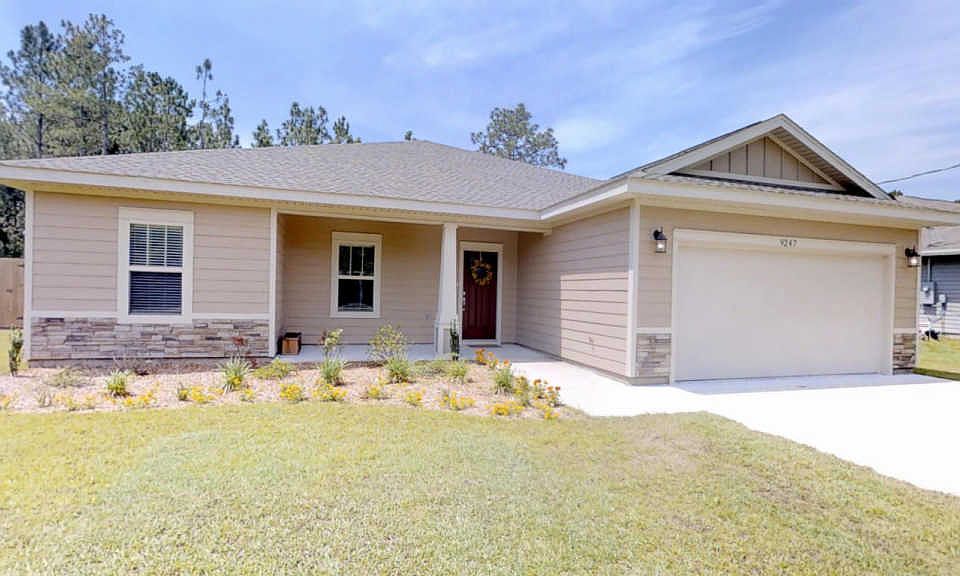 Beautiful, just-like-new, four bedroom home in prime east Navarre location, close to Navarre amenities as well as Hurlburt. This immaculate home is only one year old and has been maintained beautifully. The interior offers thick, wood laminate flooring in the common areas, neutral tile in the baths and laundry room, and carpet in the bedrooms. Crown molding and trey ceilings in the master bedroom, dining area and entry. Transom windows over the hall entries with 9 foot ceilings. Open floor plan with granite counter-tops and stainless steel appliances. Split bedrooms, all generous in size. Part of the back yard is fenced, but property line extends well beyond the fence. Room for a pool!! No HOA!