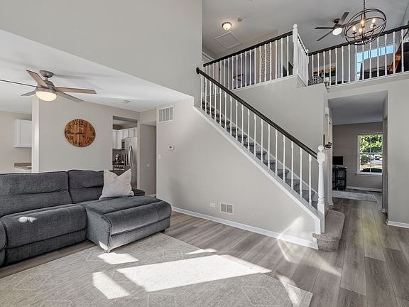 Absolutely stunning and rarely available end-unit townhome in a prime Mokena location. Fully updated and turn-key, this bright and spacious home features 2 bedrooms, 2.5 bathrooms, an office, and a versatile loft. Through the private entrance, prepare to be WOW'ed by the tall ceilings and natural light pouring in from numerous windows and skylights. The updated kitchen includes white cabinetry and new stainless steel appliances. Upstairs, BOTH bedrooms have private, attached full bathrooms! In-unit laundry conveniently located on second level (new washer & dryer!) Enjoy being the end-unit by having ample space and privacy right in your backyard. Ample space for parking between the 2 car, attached garage and convenient guest parking directly across the street. This property is a commuter's dream-walking distance to the Metra station, close to expressways, and surrounded by shopping, dining, and entertainment. Maintenance-free living as HOA includes landscaping, exterior maintenance, snow removal, garbage, and water. Freshly painted throughout with new flooring, carpet, and brand-new A/C. Between the home's features and unbeatable location, this property truly has it all!