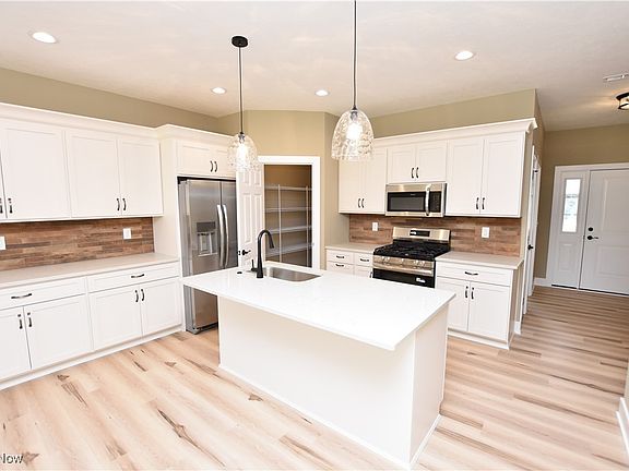 The back of the home features a lighted covered patio. This community in Seville Ohio offers immediate