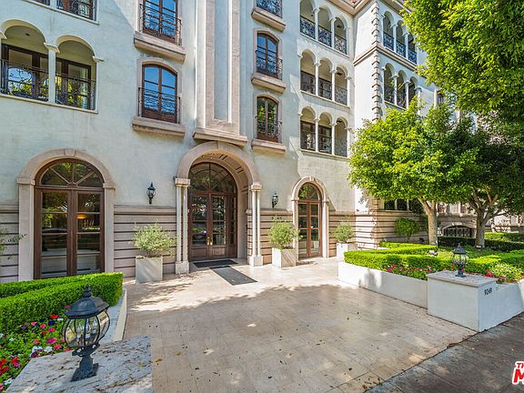 MOTIVATED SELLER! SUBMIT ALL REASONABLE OFFERS! In the heart of Beverly Hills, La Faubourg St. Germaine, a French Normandy-style concierge building, showcases its timeless character and impressive two-story grand lobby, conveniently located next to the renowned L'Ermitage hotel. Residence 302, a rarely available front-facing condo, features the building's largest 1,963 sq ft floor plan, masterfully blending scale, privacy, and thoughtful design. A formal entryway leads to a sun-filled living room, complete with French doors, two Juliet balconies, custom moldings, and a refined fireplace, creating an atmosphere of sophistication and comfort. The chef's kitchen boasts new stainless steel appliances and granite countertops, paired with brand-new hardwood floors throughout. Two primary suites are strategically positioned on opposite wings, each featuring a private balcony and walk-in closet, offering the perfect balance of luxury and seclusion. Amenities include a concierge on-site Monday through Friday, two elevators, a gym, side-by-side oversized parking, a dedicated guest parking area, and substantial individual storage. Updated security cameras provide enhanced peace of mind, while the rooftop deck offers panoramic views of Beverly Hills, Hollywood Hills, and Century City.