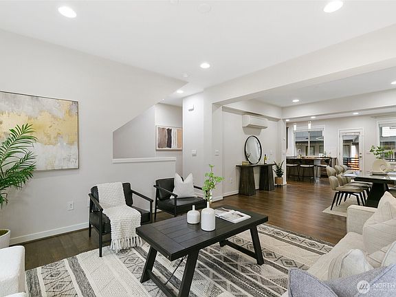 Experience luxury + convenience in Westridge at Issaquah Highlands! Highlights include upgraded kitchen cabinets, home theater, full interior repaint, quartz counters, and a ready-to-use EV charger in the garage. This 2,299 sq. ft. home offers 3 bedrooms plus a ground-floor ensuite den (ideal 4th bedroom), 3 baths + 2 powders. The main level features open living/dining, island kitchen, powder, and covered deck. Bonus room with rooftop deck + peek-a-boo views of Tiger & Cougar Mtns. Parking for 4 with 2-car garage + driveway. Moments to Grand Ridge Plaza + Transit Center!