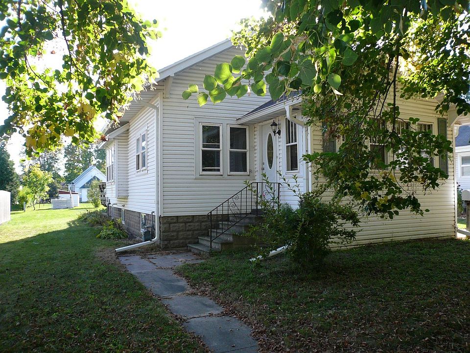 West side 2 bedroom plus office bungalow with huge oversized 2.5 car garage. Large living room with arched opening into dining room with window seat. Updated kitchen with stainless steel appliances & white cabinets & patio door that brings in lots of natural light. Step outside patio door onto wood deck & deep backyard. 3-season room by front entry. Hardwood floors in main floor bedroom & office. Large bedroom & closet upstairs with painted wood subfloor. New roof & water heater in 2024.