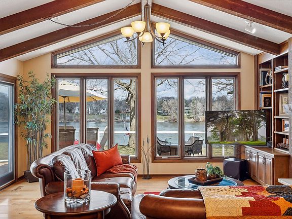 Riverfront living at its finest - Offering 142’ of prime Mississippi River frontage on a double lot. Beautiful river views from your newer Pella windows throughout the home. Enjoy your gourmet kitchen with SS appliances, granite countertops, and updated bathrooms. Kitchen & baths offer custom cabinets with soft close. 4 Car garage including a heated workshop with 8’ door. Tiled & HWD floors, new washer/dryer, new HVAC, concrete driveway, and in- ground irrigation. Entertain in style inside & out. Deck, patio, plenty of yard space on your .86-acre double lot. This is the one you have waited for. Hurry!