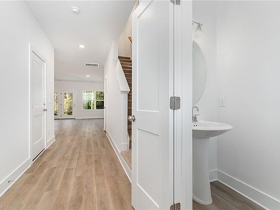 The Belmont plan with 3 bedrooms, 2 1/2 baths and 1 car garage. This plan is open and spacious. The kitchen features quartz countertops, island with overhang, subway tile backsplash, pendant lighting and stainless steel appliances. The dining and Great room are open from the kitchen. The great room leads to a rear patio. Upstairs the primary suite includes a bath with double vanities, a walk-in shower and private water closet. There are also 2 additional bedrooms with a full bath and the laundry room upstairs. The main level has luxury vinyl plank flooring as well as the baths and laundry upstairs. Estimated completion is by end of November 2023. EcoSelect Certified. Ask about how to get up to $3000 toward closing costs with preferred lender and closing attorney!