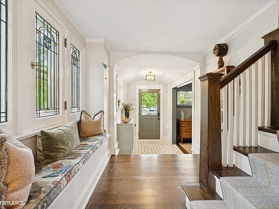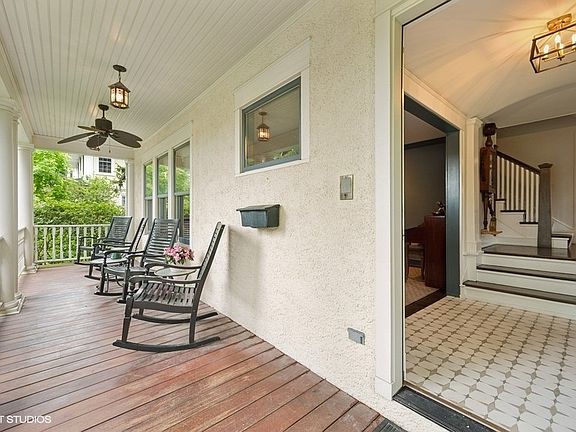 Classic East Wilmette home with great front porch, oversized lot (58' x 201'), and tons of space! This gorgeous 6 bedroom, 5.1 bathroom property had a full gut renovation & three-story addition in 2007 - and tons of improvements along the way. The inviting front porch welcomes you in, as you are greeted to a pretty tiled entry! Formal living room features lovely windows, fireplace and nice bookcases - open to formal dining room with great space - and into tasteful wet-bar with sink & two beverage refrigerators. Eat-in chef's kitchen with white cabinets, quartz countertops, two sinks, Wolf double oven & range, SubZero refrigerator/freezer, two beverage drawers, warming drawer, walk-in pantry, breakfast bar and table space! Oversized family room overlooks backyard with fireplace and attractive bookcases. Sunroom is gorgeous & bright and walks out to great back deck! Powder room and mudroom with custom cubbies round out the first floor. Second floor features primary suite with fireplace in the bedroom, huge bathroom with double vanity, steam shower, radiant floors, soaking tub, and water closet, and walk-in closet with second laundry. Three more family bedrooms on this floor share two fully updated hall bathrooms. Third floor offers two additional bedrooms (or office space) and a great hall bathroom. Enormous basement with theater room, wine cellar, exercise room, bar, laundry room, full bathroom and recreation room with 9' ceilings! Beautiful backyard with lush landscaping, stone patio, heated walkway, heated 2-car garage with attic storage, and 3-car parking pad! Walk just a couple of blocks to the center of town, all Wilmette's wonderful restaurants, the metra train, or the beach!