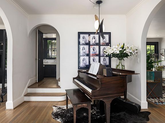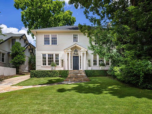 Nestled on one of Forest Park’s most sought-after streets, this elegant Georgian-style home blends timeless character with modern comfort. The main house offers 3 bedrooms and 3.5 baths, while a charming studio above the 2-car garage provides ideal space for guest quarters or a home office. Inside, a gracious foyer opens to a large dining room and spacious living room with fireplace and accordion doors to a stone patio. A cozy den adjoins the living room, and the kitchen features solid-surface counters, stainless appliances, and a wall of windows overlooking the landscaped backyard. The main level also includes a powder room and laundry with slate floors. Upstairs, the spacious primary suite boasts a dressing room, screened porch, and spa-like bathroom with heated floors, jetted soaking tub, double vanity, and a large picture window. Filled with natural light and enhanced by professionally designed stonework and gardens, this home also offers alley access at the rear.